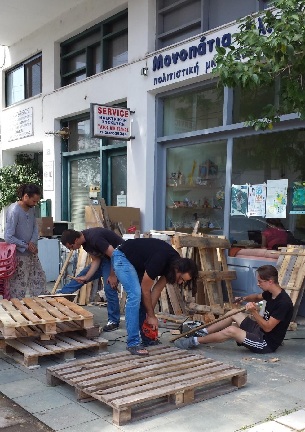 Victor`s idea was shared, approved and supported by his hosting organization Solidarity Tracks and a prototype of garbage was created by Victor. The next step was to contact the Municipality of Lefkada for cooperation, support and wider promotion. They appreciated this initiative and offered their support for it. Other volunteers from Solidarity Tracks have joined to realize this idea (from France and Poland). With their joint forces they prepare together garbage cans for the final event, 25th of June.